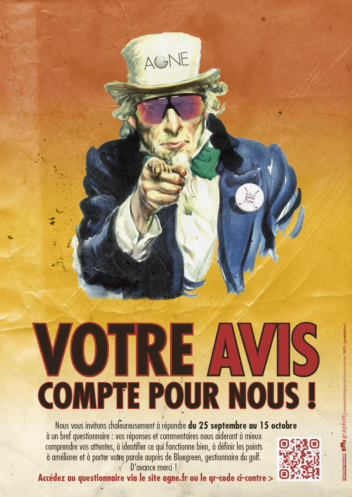 Dans le cadre de l’action de l’association à l’amélioration de votre vie golfique à Nantes-Erdre, nous vous invitons chaleureusement à répondre à ce bref questionnaire qui sera accessible du 25/09/25 au 15/10/25.